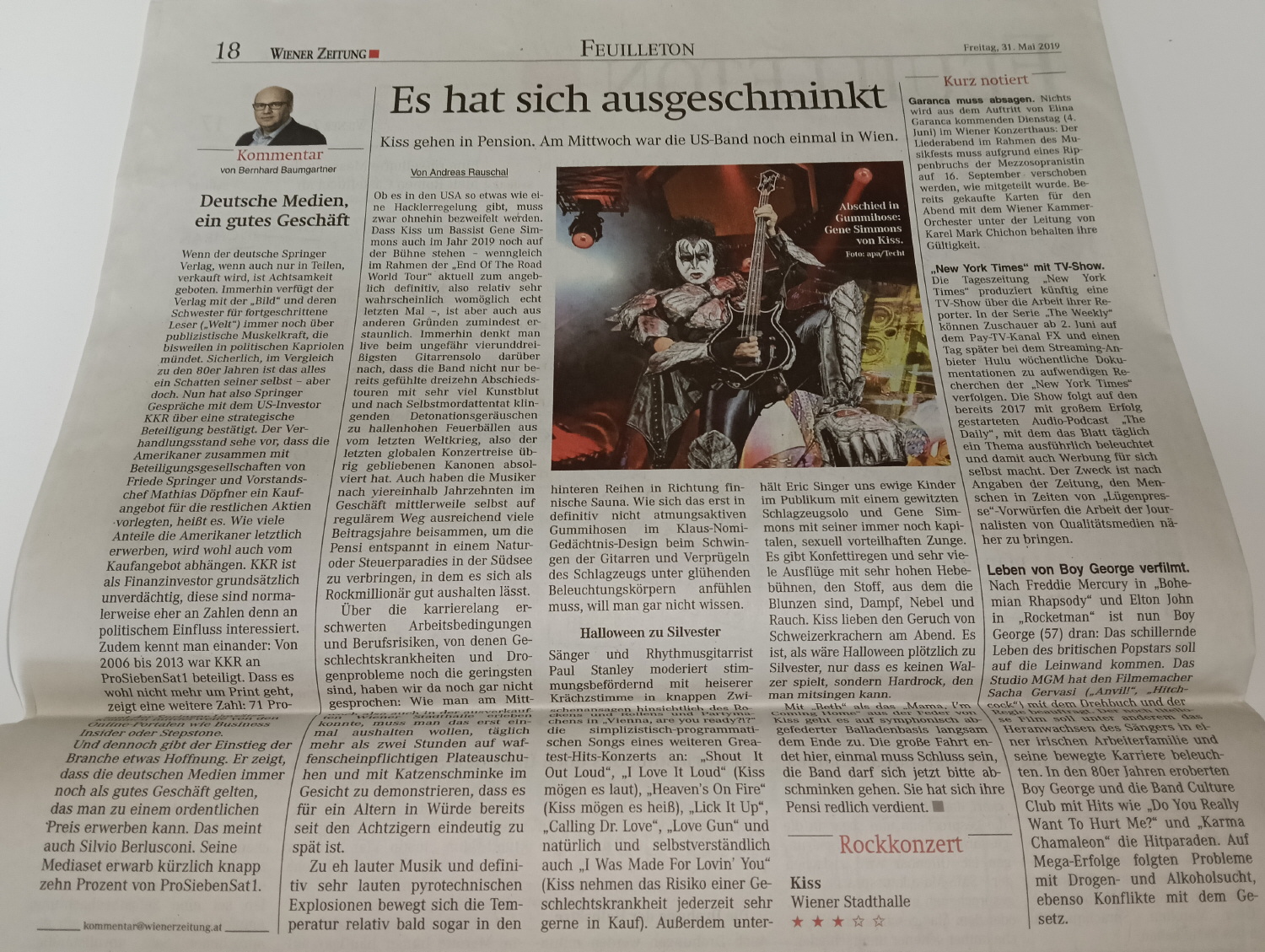 KISS Newspaper Wiener Zeitung 2019