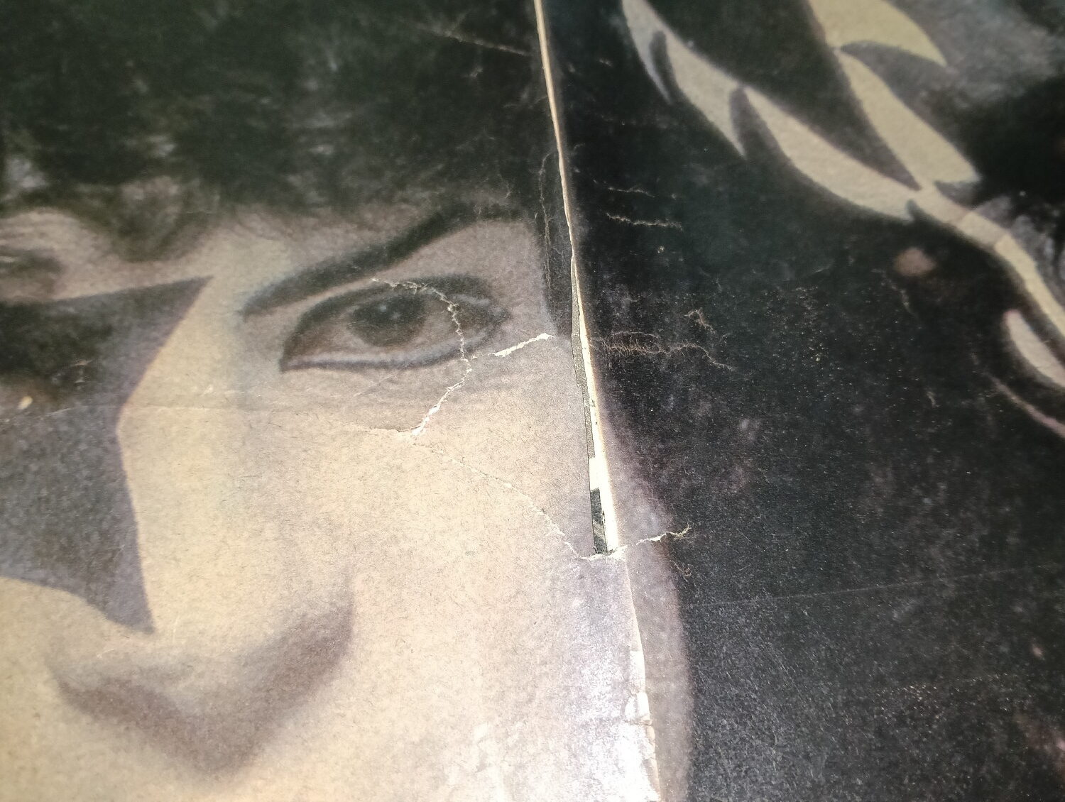 Magazine-posters – especially vintage ones – were often used to hang on a wall and many had just normal thin paper. So these could have tag-holes, adhesive tape residue, stains, tears, rips, seam splits, holes from the staples of the magazines, etc.
