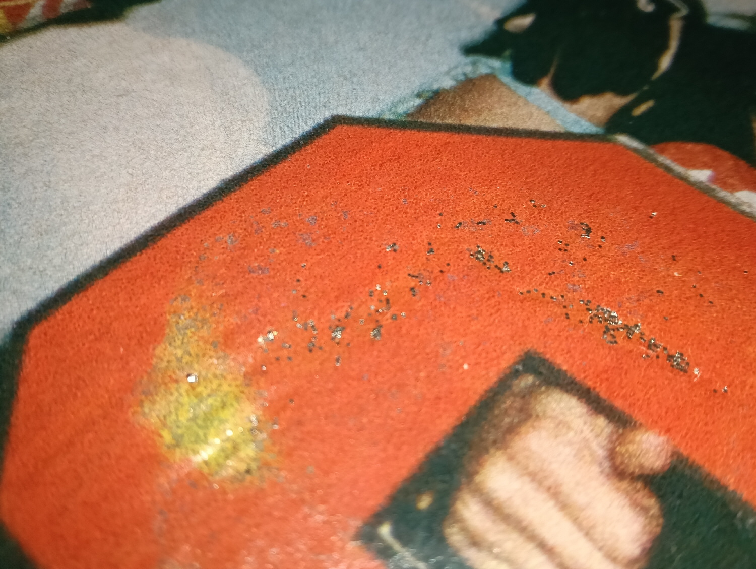 Magazine-posters – especially vintage ones – were often used to hang on a wall and many had just normal thin paper. So these could have tag-holes, adhesive tape residue, stains, tears, rips, seam splits, holes from the staples of the magazines, etc.