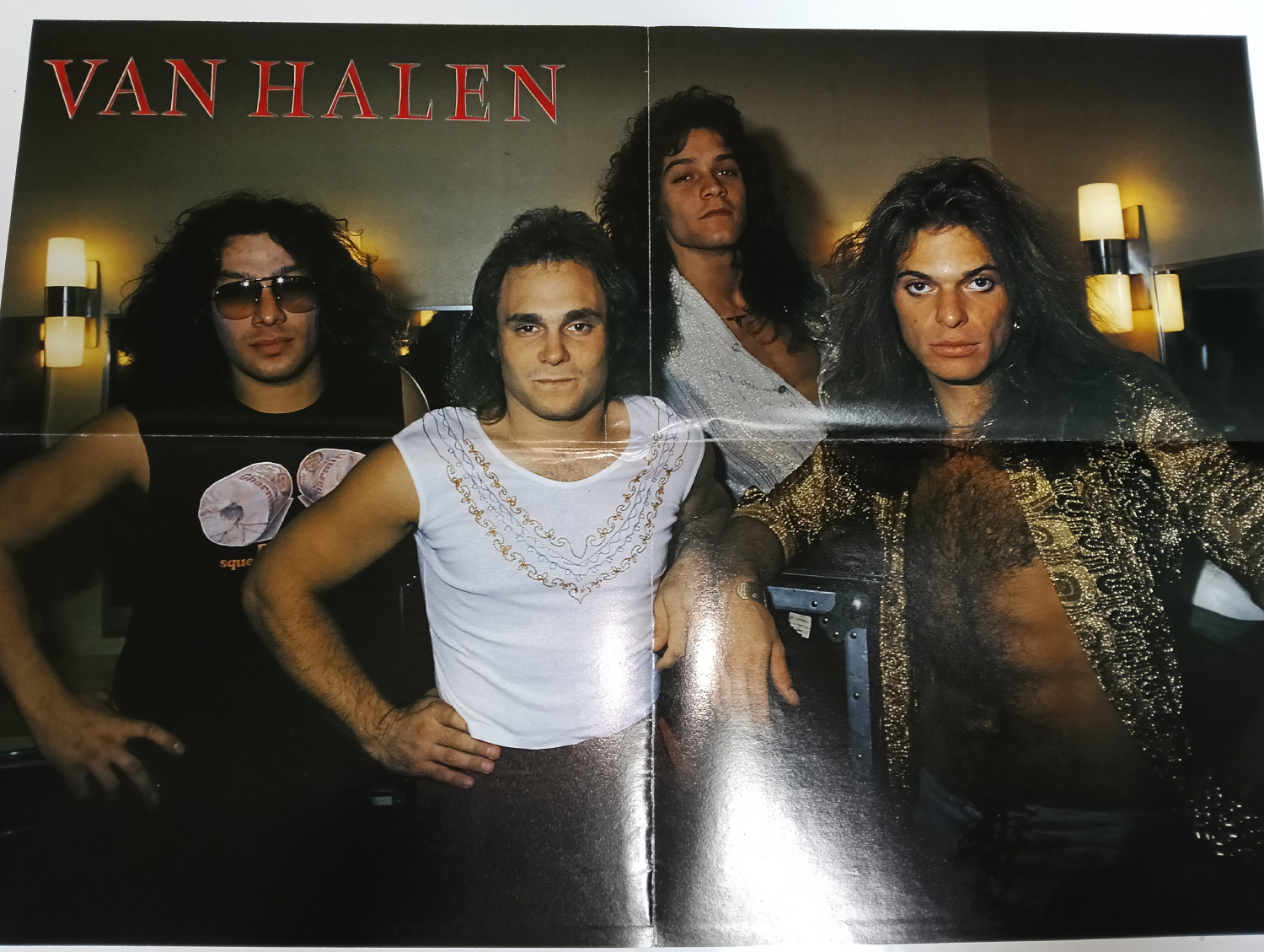 Magazine-posters – especially vintage ones – were often used to hang on a wall and many had just normal thin paper. So these could have tag-holes, adhesive tape residue, stains, tears, rips, seam splits, holes from the staples of the magazines, etc.