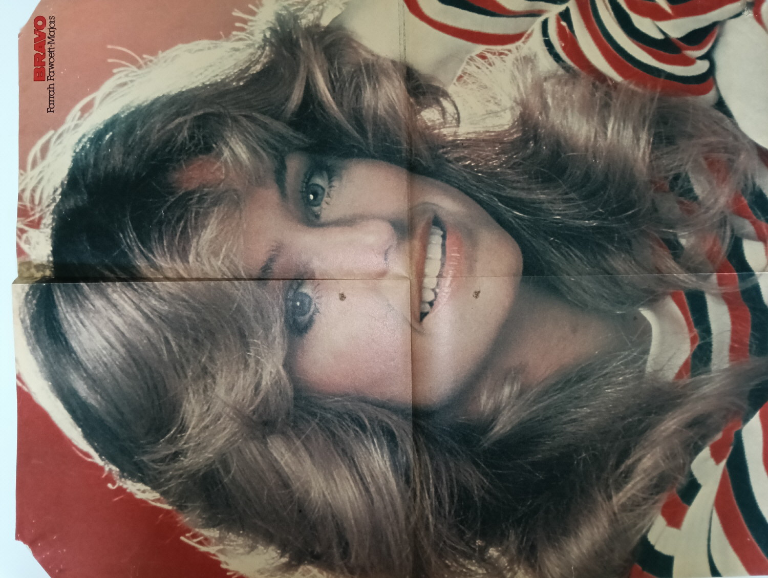 Magazine-posters – especially vintage ones – were often used to hang on a wall and many had just normal thin paper. So these could have tag-holes, adhesive tape residue, stains, tears, rips, seam splits, holes from the staples of the magazines, etc.