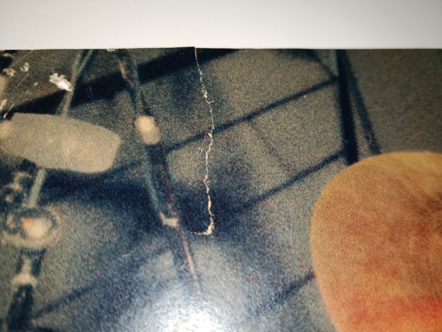 Magazine-posters – especially vintage ones – were often used to hang on a wall and many had just normal thin paper. So these could have tag-holes, adhesive tape residue, stains, tears, rips, seam splits, holes from the staples of the magazines, etc.