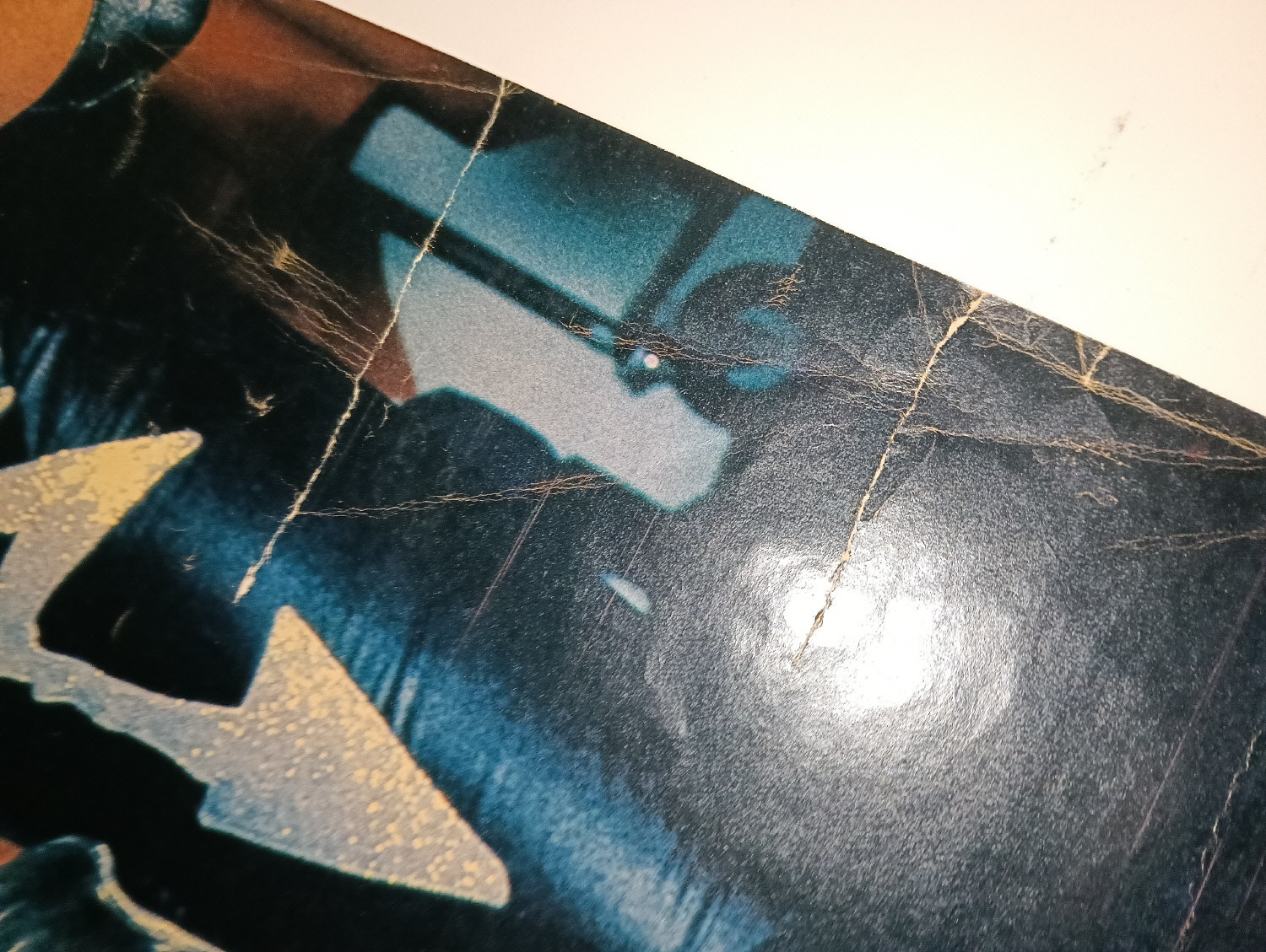 Magazine-posters – especially vintage ones – were often used to hang on a wall and many had just normal thin paper. So these could have tag-holes, adhesive tape residue, stains, tears, rips, seam splits, holes from the staples of the magazines, etc.