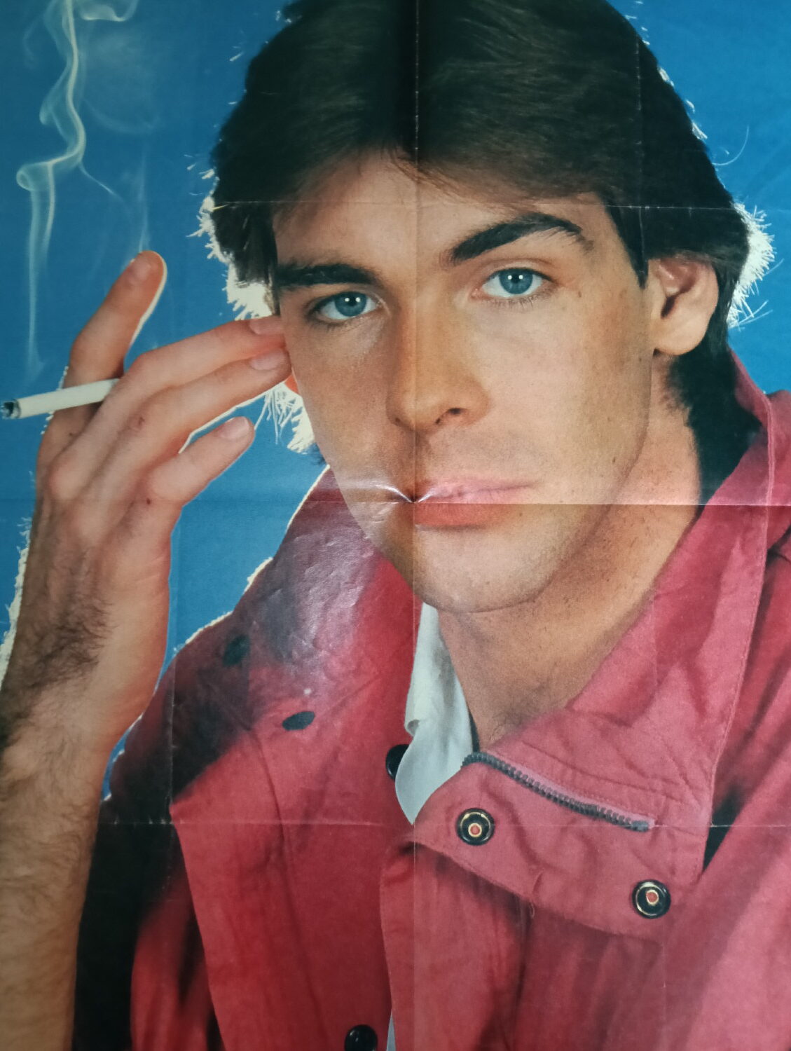 Magazine-posters – especially vintage ones – were often used to hang on a wall and many had just normal thin paper. So these could have tag-holes, adhesive tape residue, stains, tears, rips, seam splits, holes from the staples of the magazines, etc.