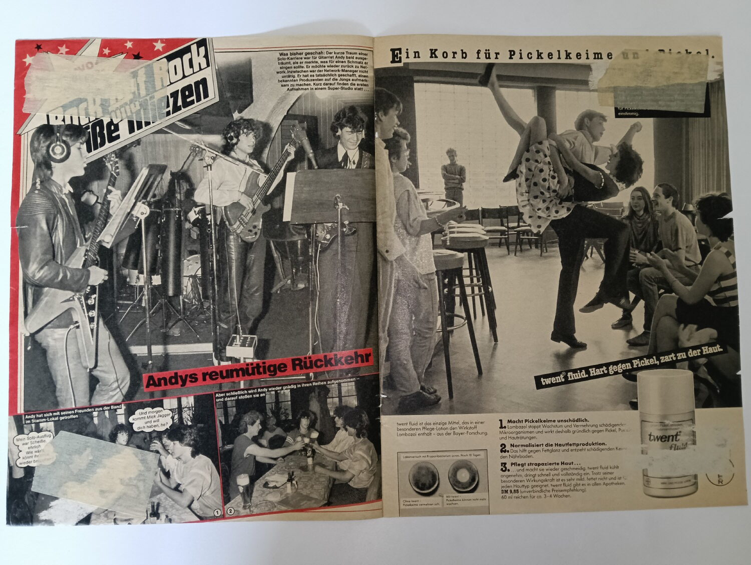 Magazine-posters – especially vintage ones – were often used to hang on a wall and many had just normal thin paper. So these could have tag-holes, adhesive tape residue, stains, tears, rips, seam splits, holes from the staples of the magazines, etc.