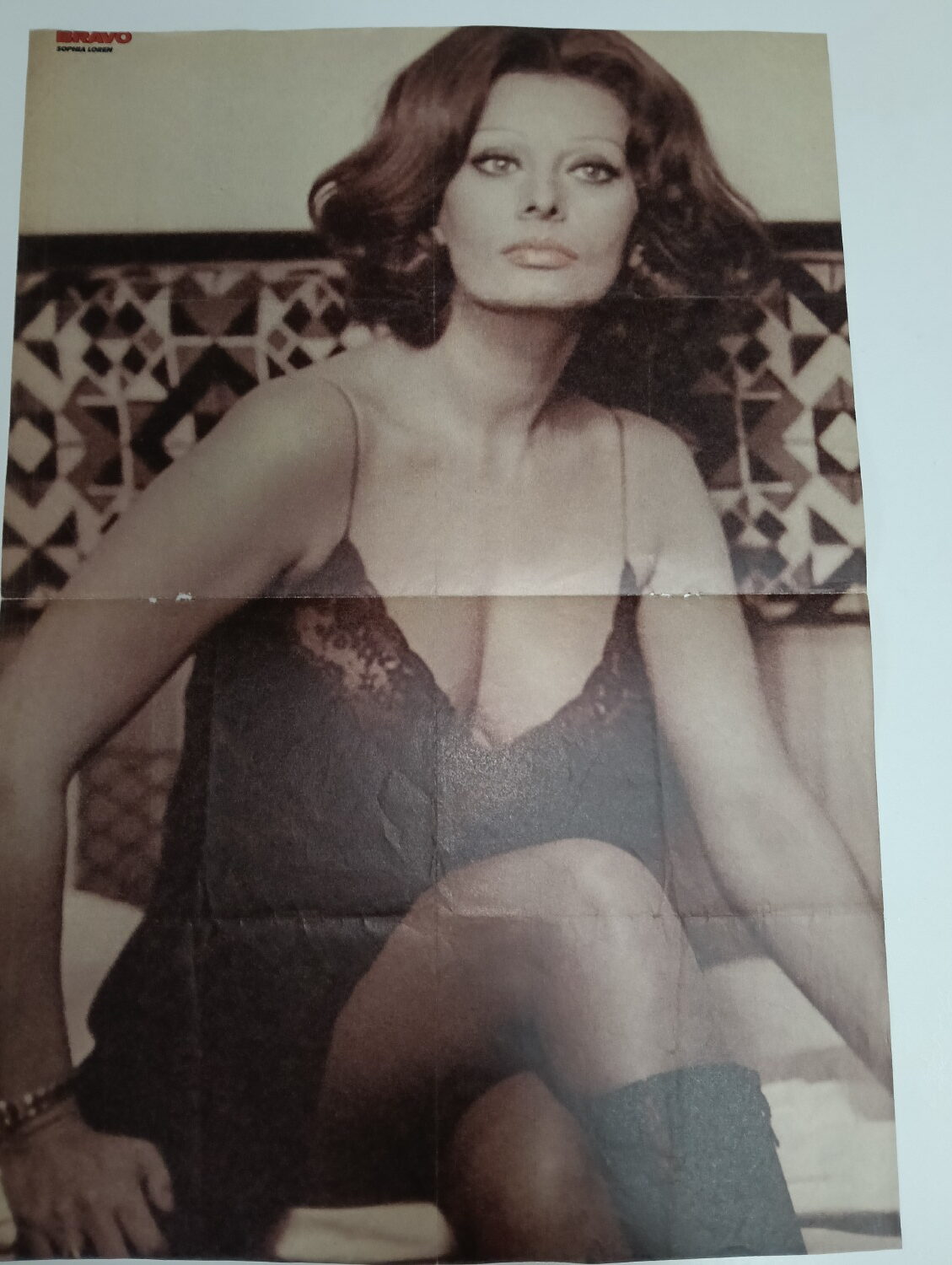 Magazine-posters – especially vintage ones – were often used to hang on a wall and many had just normal thin paper. So these could have tag-holes, adhesive tape residue, stains, tears, rips, seam splits, holes from the staples of the magazines, etc.