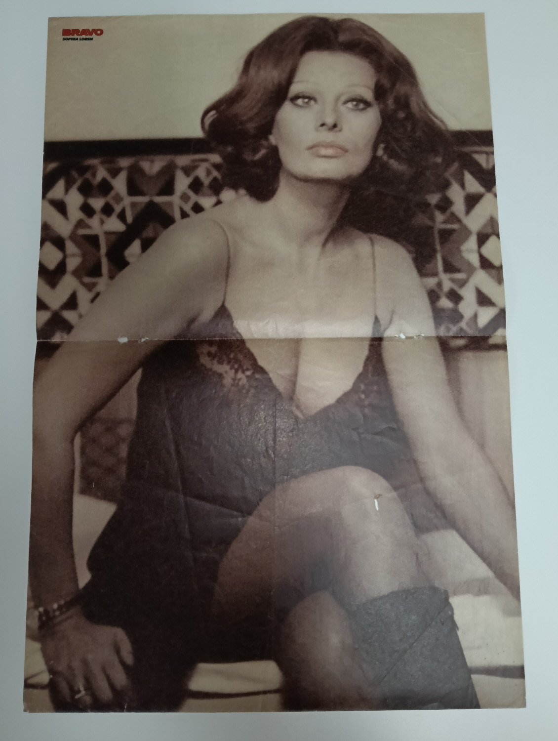 Magazine-posters – especially vintage ones – were often used to hang on a wall and many had just normal thin paper. So these could have tag-holes, adhesive tape residue, stains, tears, rips, seam splits, holes from the staples of the magazines, etc.