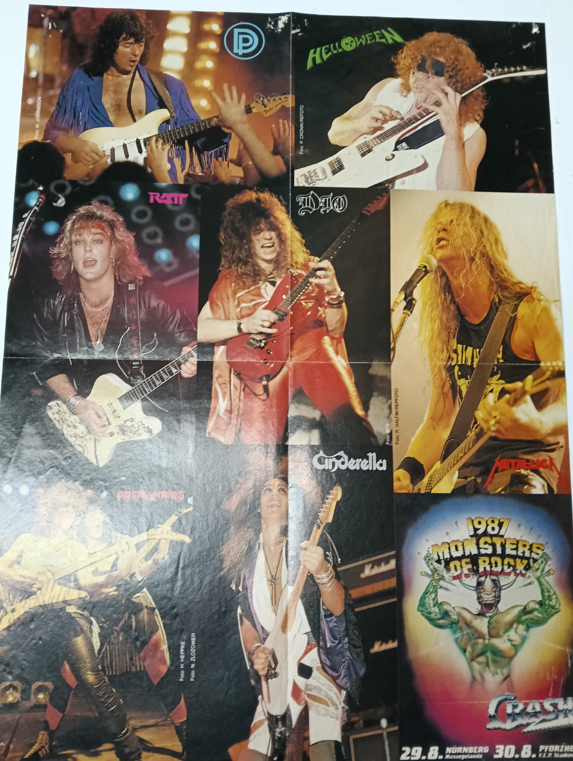 Magazine-posters – especially vintage ones – were often used to hang on a wall and many had just normal thin paper. So these could have tag-holes, adhesive tape residue, stains, tears, rips, seam splits, holes from the staples of the magazines, etc.