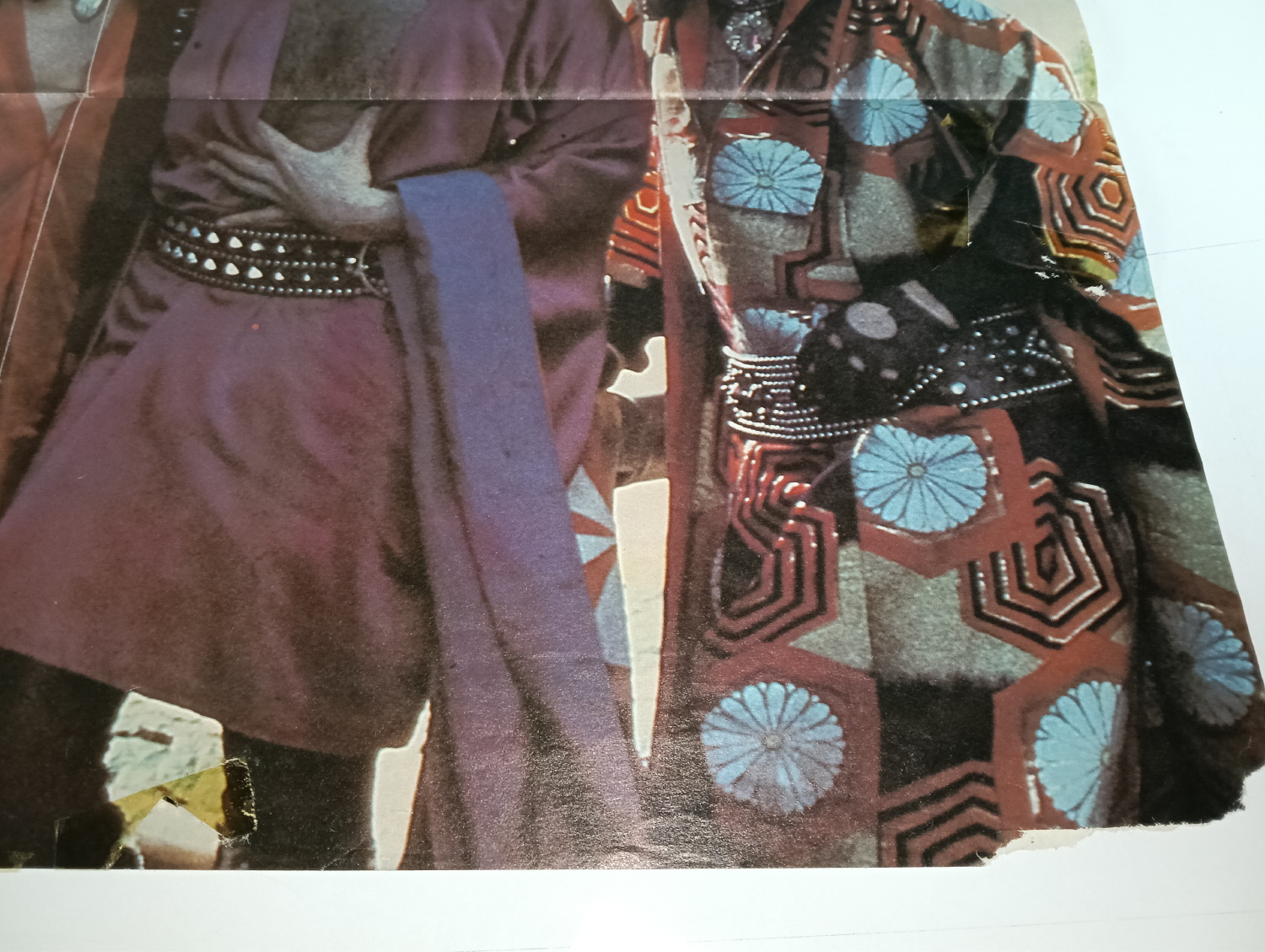 Magazine-posters – especially vintage ones – were often used to hang on a wall and many had just normal thin paper. So these could have tag-holes, adhesive tape residue, stains, tears, rips, seam splits, holes from the staples of the magazines, etc.