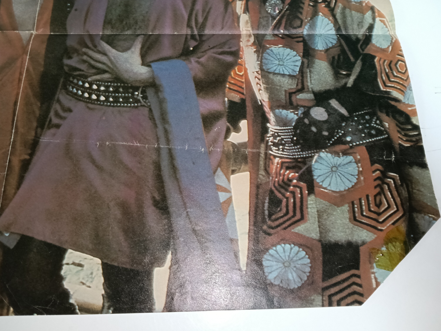 Magazine-posters – especially vintage ones – were often used to hang on a wall and many had just normal thin paper. So these could have tag-holes, adhesive tape residue, stains, tears, rips, seam splits, holes from the staples of the magazines, etc.