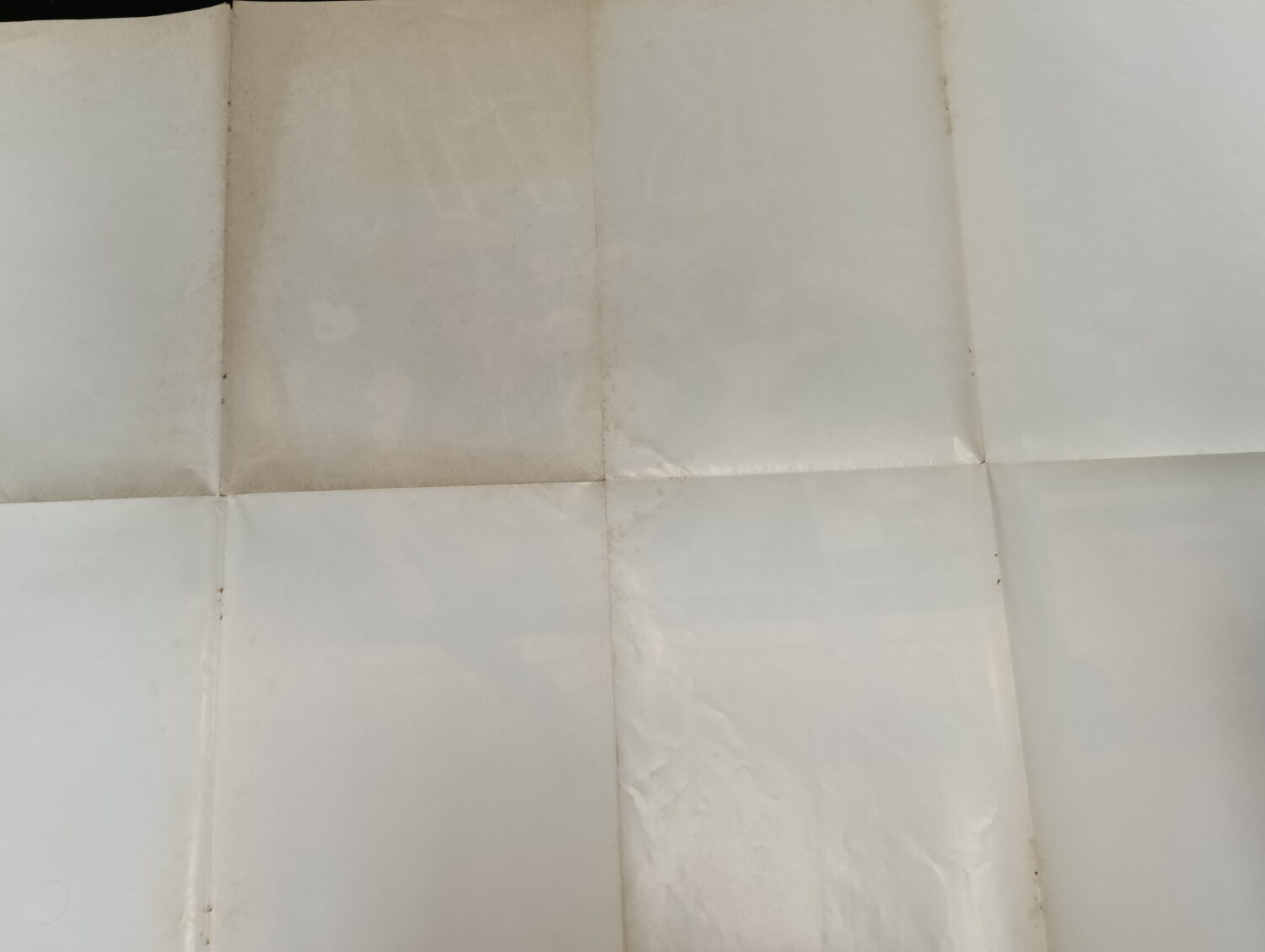 Magazine-posters – especially vintage ones – were often used to hang on a wall and many had just normal thin paper. So these could have tag-holes, adhesive tape residue, stains, tears, rips, seam splits, holes from the staples of the magazines, etc.