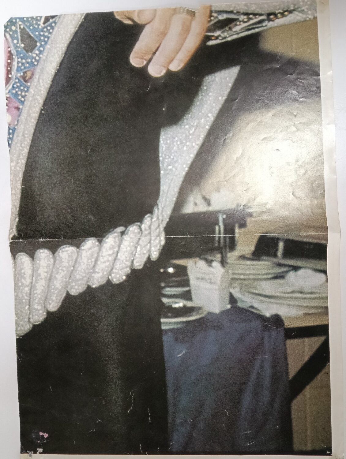 Magazine-posters – especially vintage ones – were often used to hang on a wall and many had just normal thin paper. So these could have tag-holes, adhesive tape residue, stains, tears, rips, seam splits, holes from the staples of the magazines, etc.