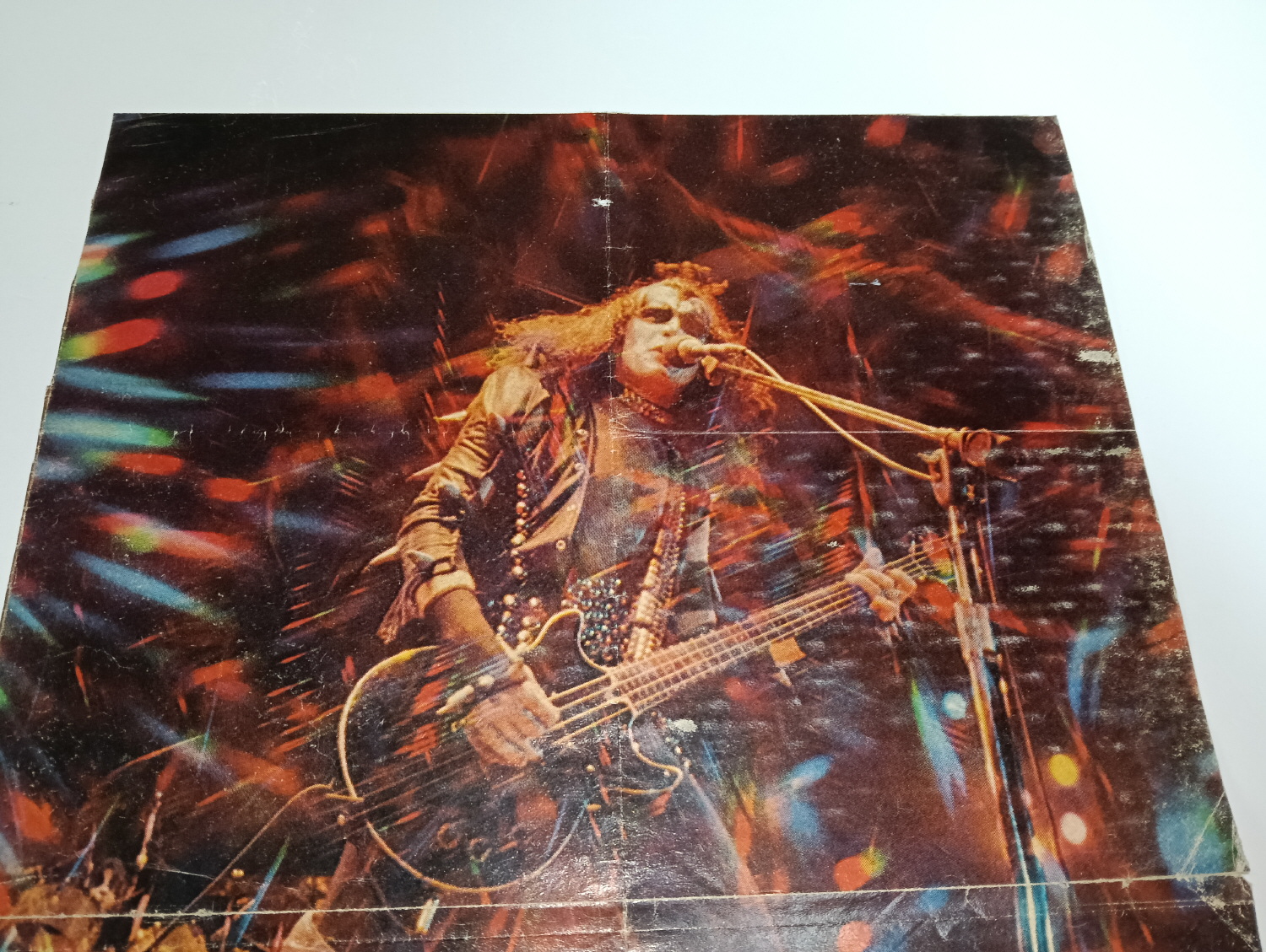 Magazine-posters – especially vintage ones – were often used to hang on a wall and many had just normal thin paper. So these could have tag-holes, adhesive tape residue, stains, tears, rips, seam splits, holes from the staples of the magazines, etc.