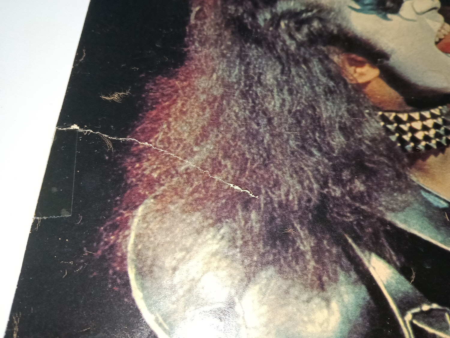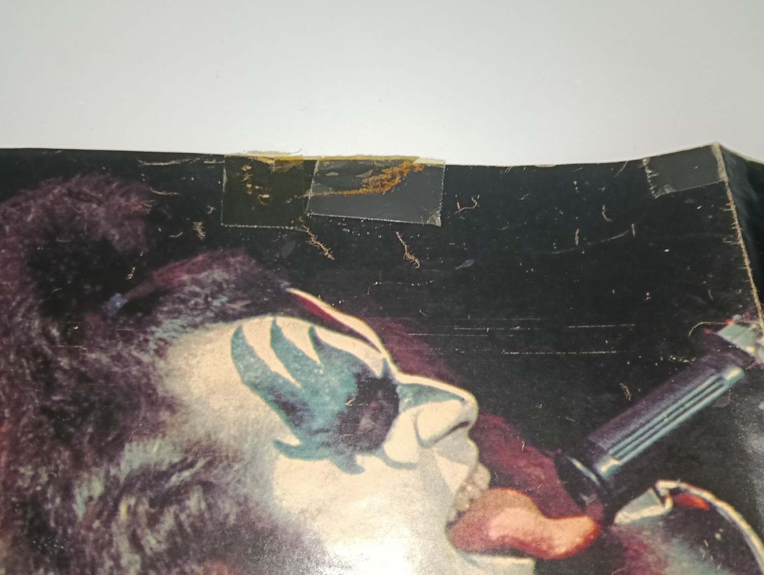 Magazine-posters – especially vintage ones – were often used to hang on a wall and many had just normal thin paper. So these could have tag-holes, adhesive tape residue, stains, tears, rips, seam splits, holes from the staples of the magazines, etc.