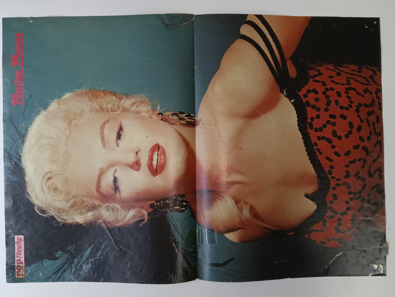 Magazine-posters – especially vintage ones – were often used to hang on a wall and many had just normal thin paper. So these could have tag-holes, adhesive tape residue, stains, tears, rips, seam splits, holes from the staples of the magazines, etc.