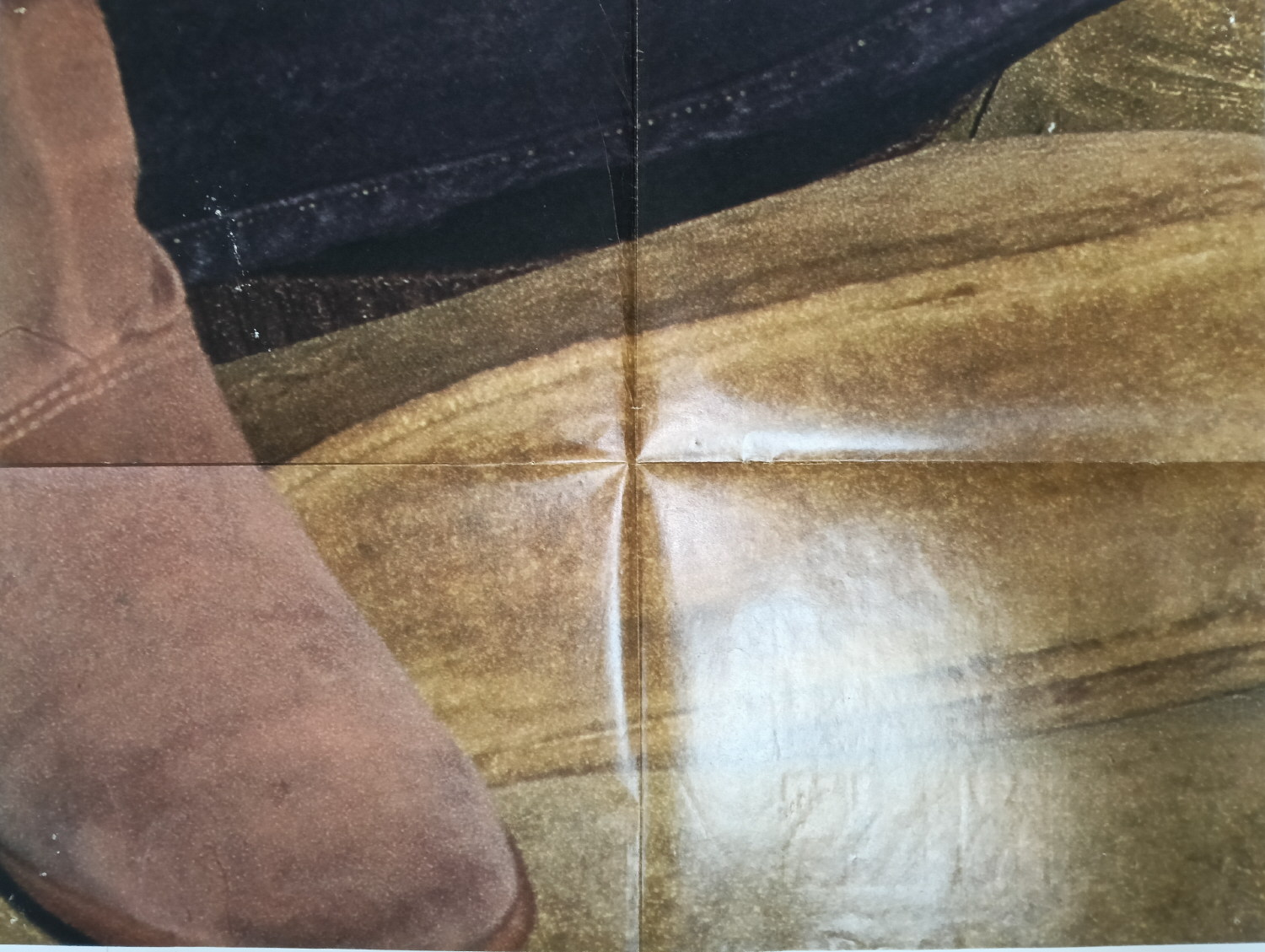 Magazine-posters – especially vintage ones – were often used to hang on a wall and many had just normal thin paper. So these could have tag-holes, adhesive tape residue, stains, tears, rips, seam splits, holes from the staples of the magazines, etc.