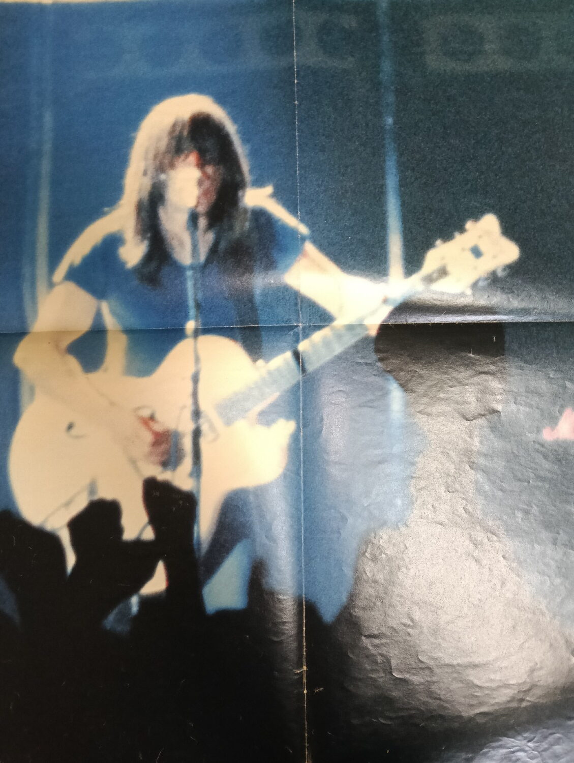 Magazine-posters – especially vintage ones – were often used to hang on a wall and many had just normal thin paper. So these could have tag-holes, adhesive tape residue, stains, tears, rips, seam splits, holes from the staples of the magazines, etc.