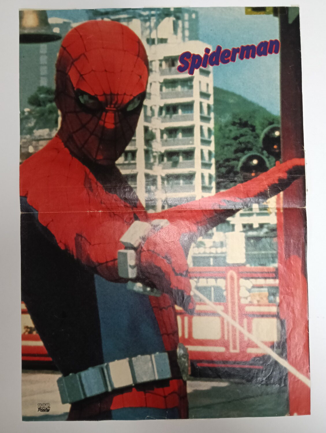 Magazine-posters – especially vintage ones – were often used to hang on a wall and many had just normal thin paper. So these could have tag-holes, adhesive tape residue, stains, tears, rips, seam splits, holes from the staples of the magazines, etc.