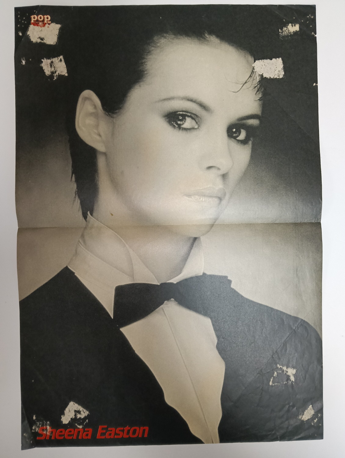 Magazine-posters – especially vintage ones – were often used to hang on a wall and many had just normal thin paper. So these could have tag-holes, adhesive tape residue, stains, tears, rips, seam splits, holes from the staples of the magazines, etc.