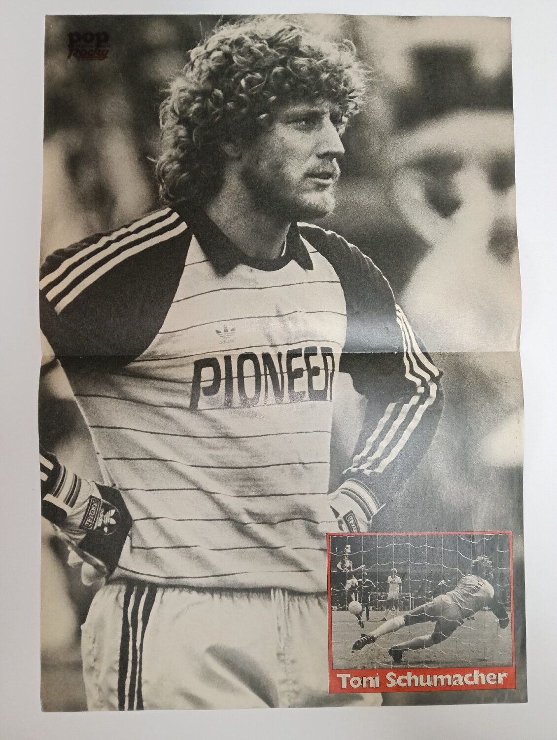 Magazine-posters – especially vintage ones – were often used to hang on a wall and many had just normal thin paper. So these could have tag-holes, adhesive tape residue, stains, tears, rips, seam splits, holes from the staples of the magazines, etc.