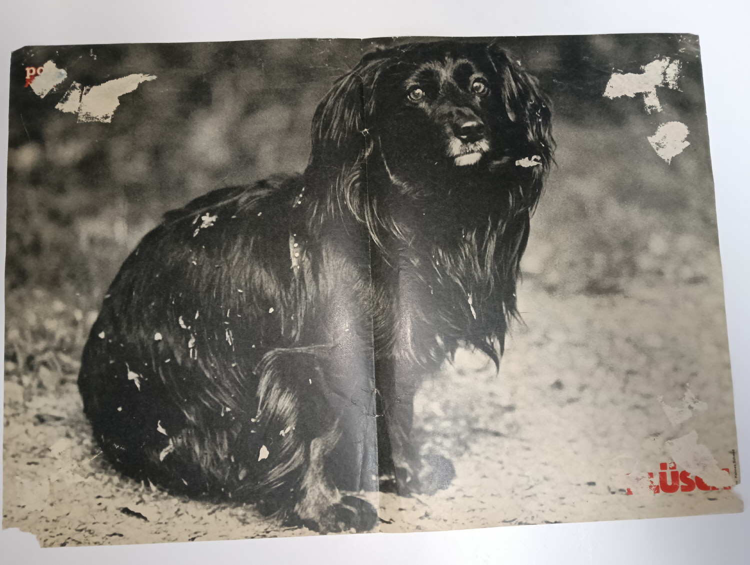Magazine-posters – especially vintage ones – were often used to hang on a wall and many had just normal thin paper. So these could have tag-holes, adhesive tape residue, stains, tears, rips, seam splits, holes from the staples of the magazines, etc.