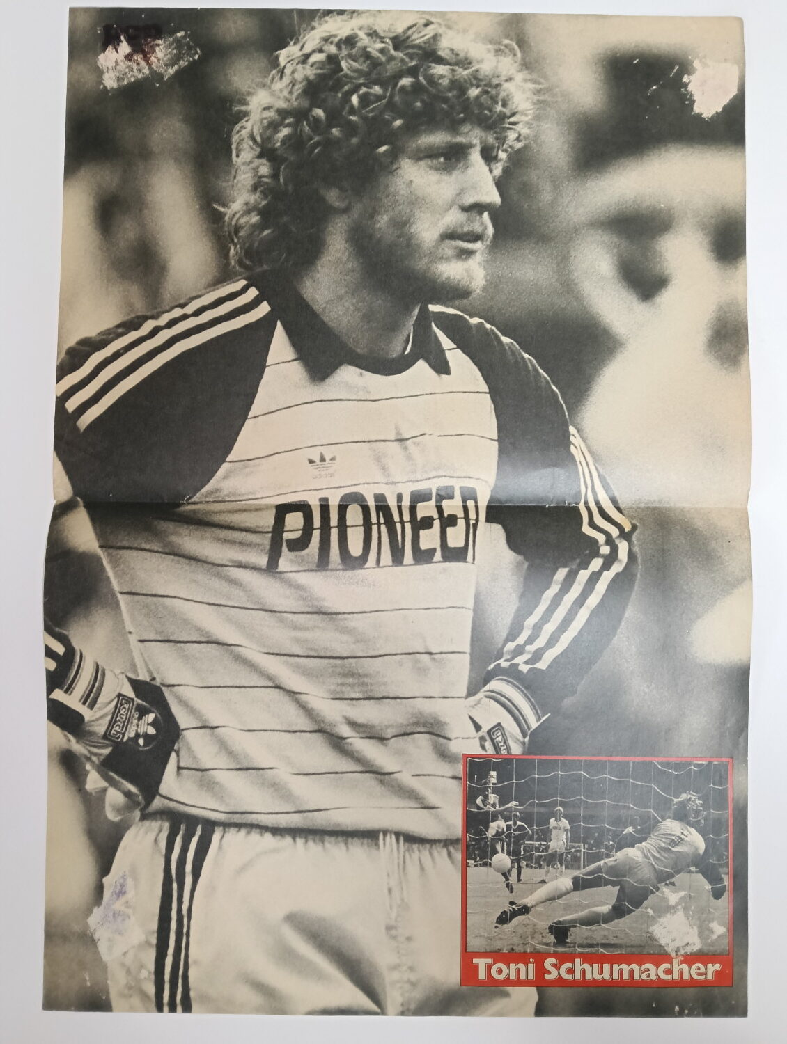 Magazine-posters – especially vintage ones – were often used to hang on a wall and many had just normal thin paper. So these could have tag-holes, adhesive tape residue, stains, tears, rips, seam splits, holes from the staples of the magazines, etc.