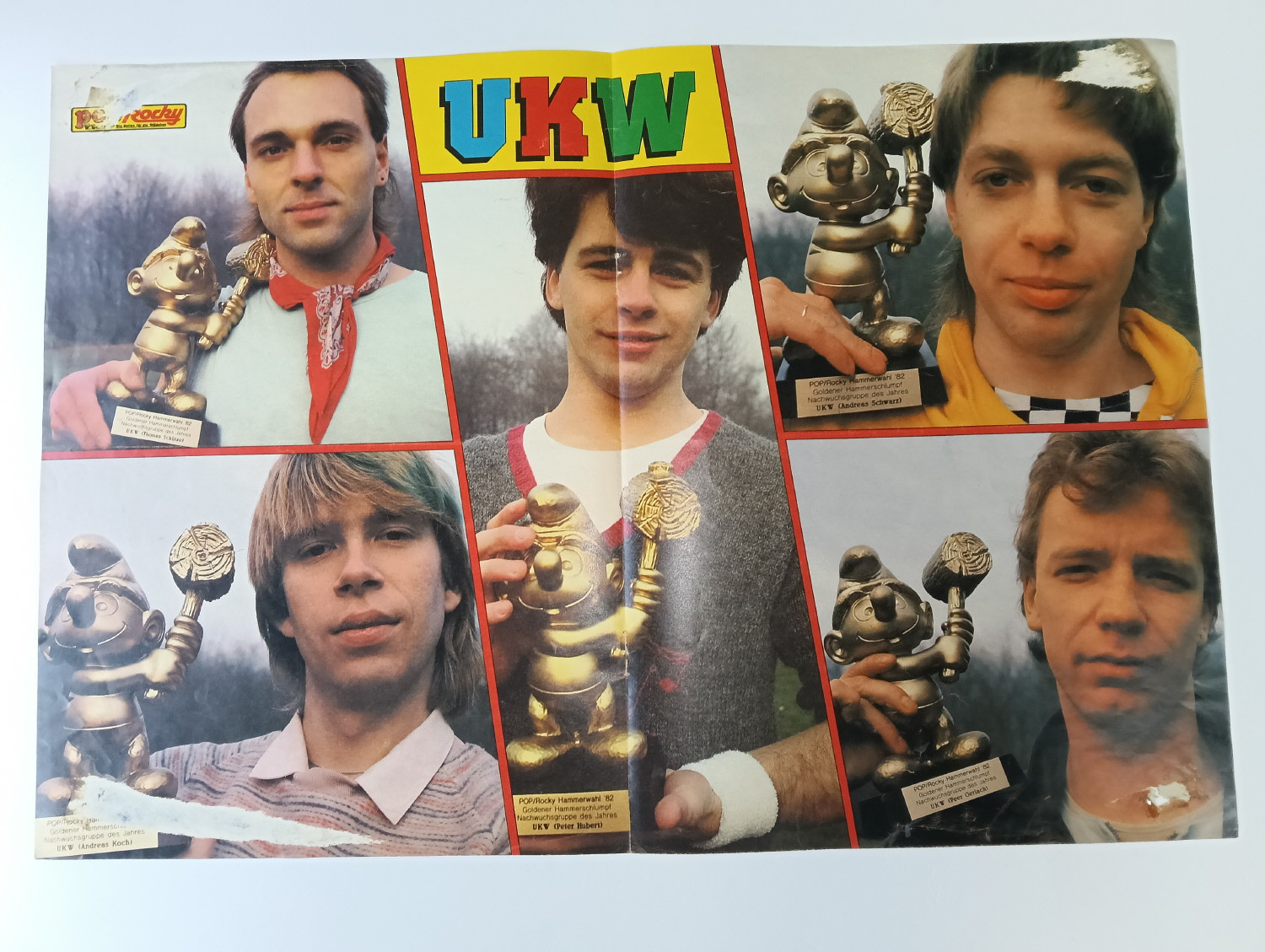 Magazine-posters – especially vintage ones – were often used to hang on a wall and many had just normal thin paper. So these could have tag-holes, adhesive tape residue, stains, tears, rips, seam splits, holes from the staples of the magazines, etc.