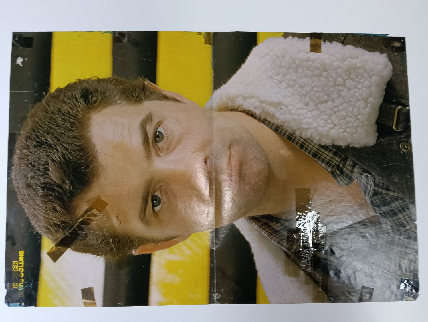 Magazine-posters – especially vintage ones – were often used to hang on a wall and many had just normal thin paper. So these could have tag-holes, adhesive tape residue, stains, tears, rips, seam splits, holes from the staples of the magazines, etc.