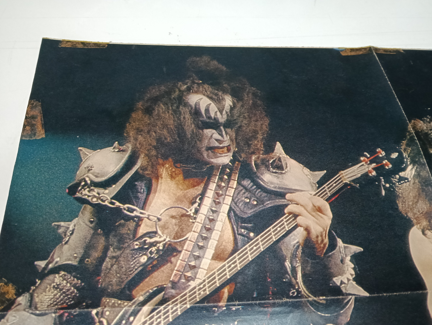 Magazine-posters – especially vintage ones – were often used to hang on a wall and many had just normal thin paper. So these could have tag-holes, adhesive tape residue, stains, tears, rips, seam splits, holes from the staples of the magazines, etc.