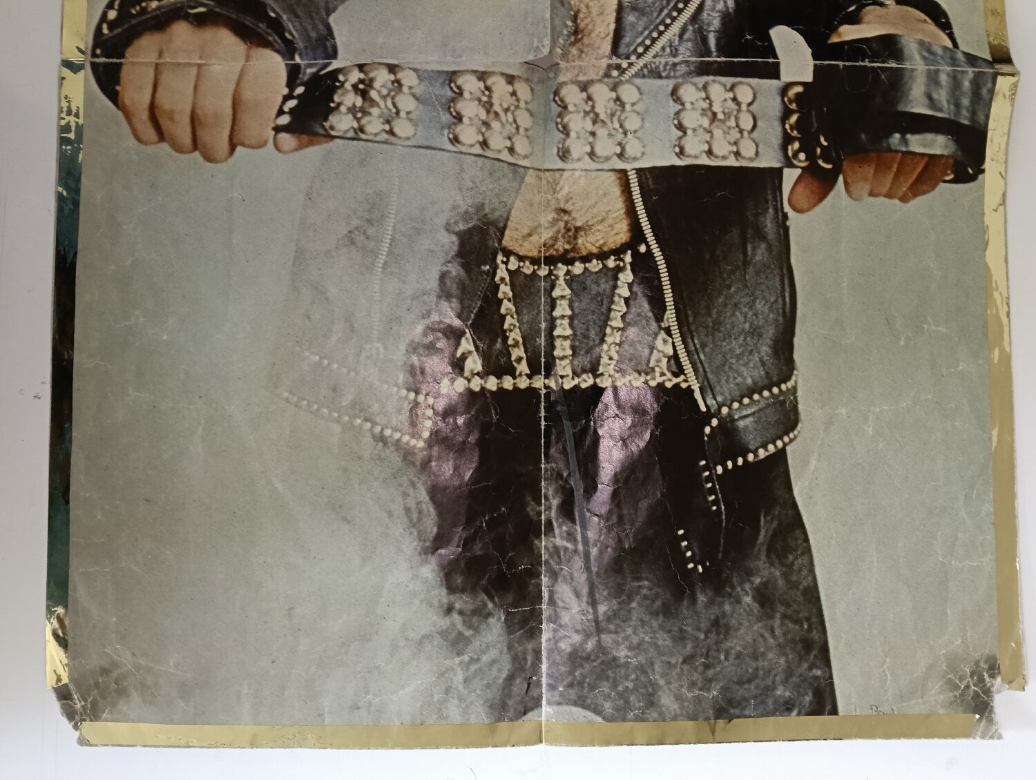 Magazine-posters – especially vintage ones – were often used to hang on a wall and many had just normal thin paper. So these could have tag-holes, adhesive tape residue, stains, tears, rips, seam splits, holes from the staples of the magazines, etc.