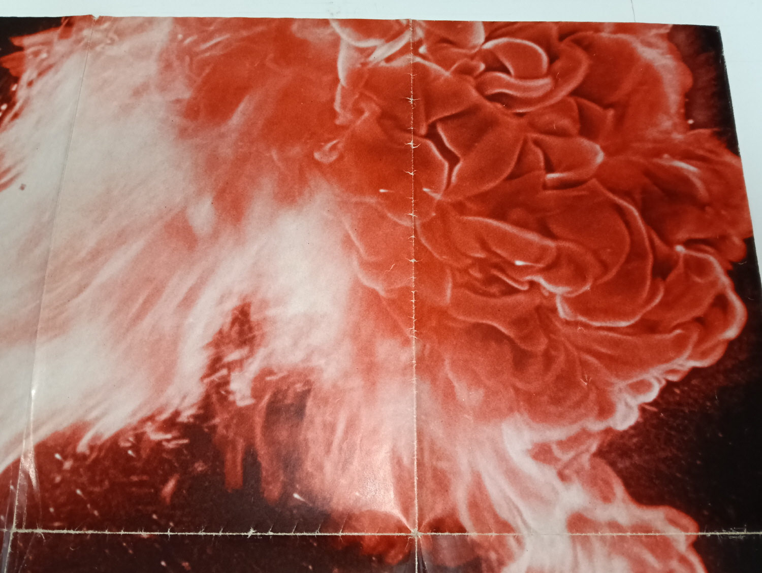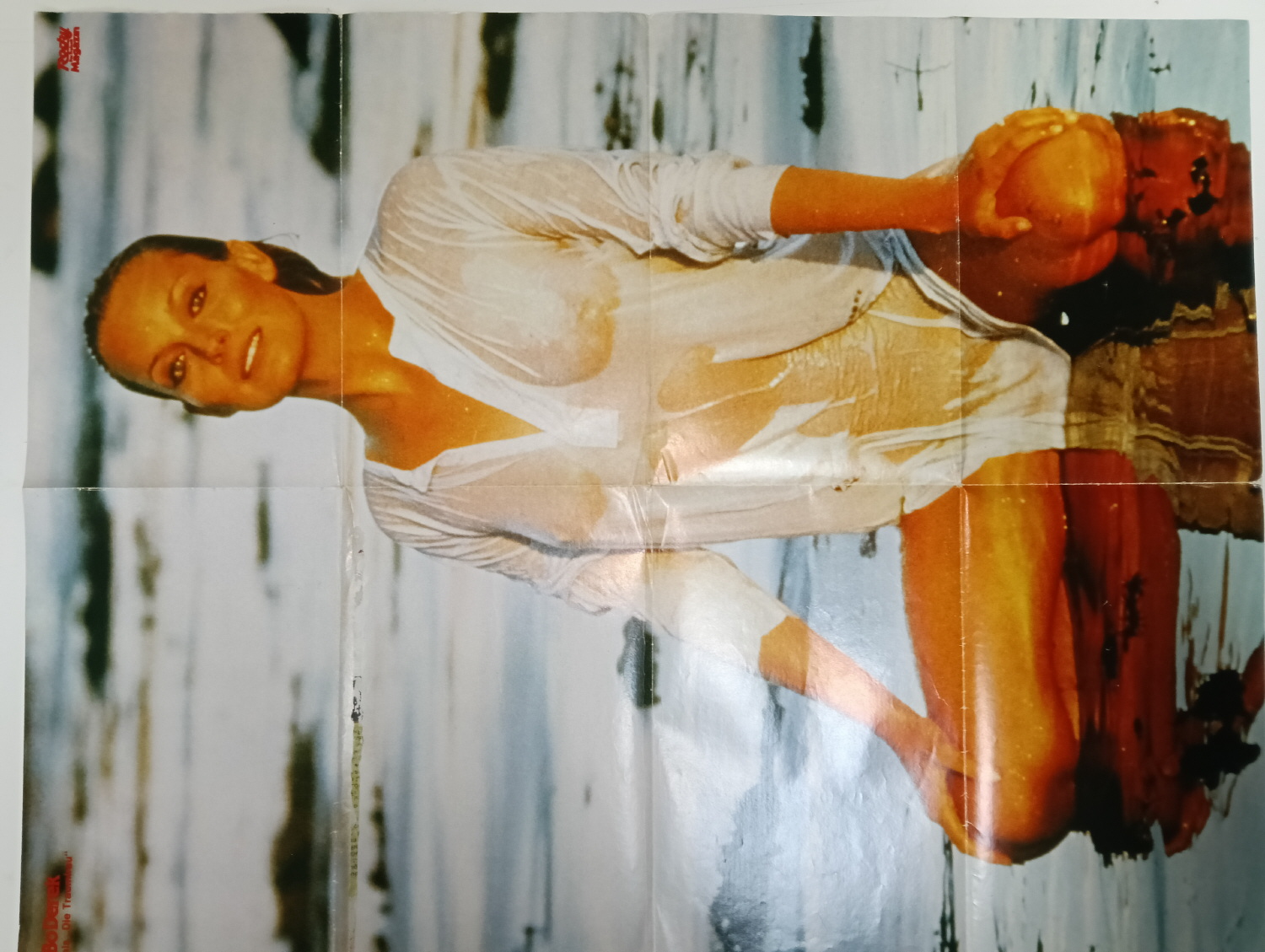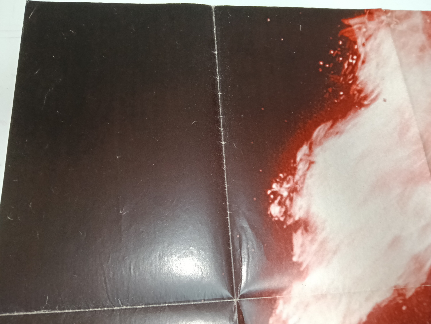 Magazine-posters – especially vintage ones – were often used to hang on a wall and many had just normal thin paper. So these could have tag-holes, adhesive tape residue, stains, tears, rips, seam splits, holes from the staples of the magazines, etc.